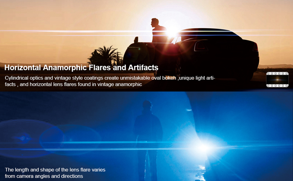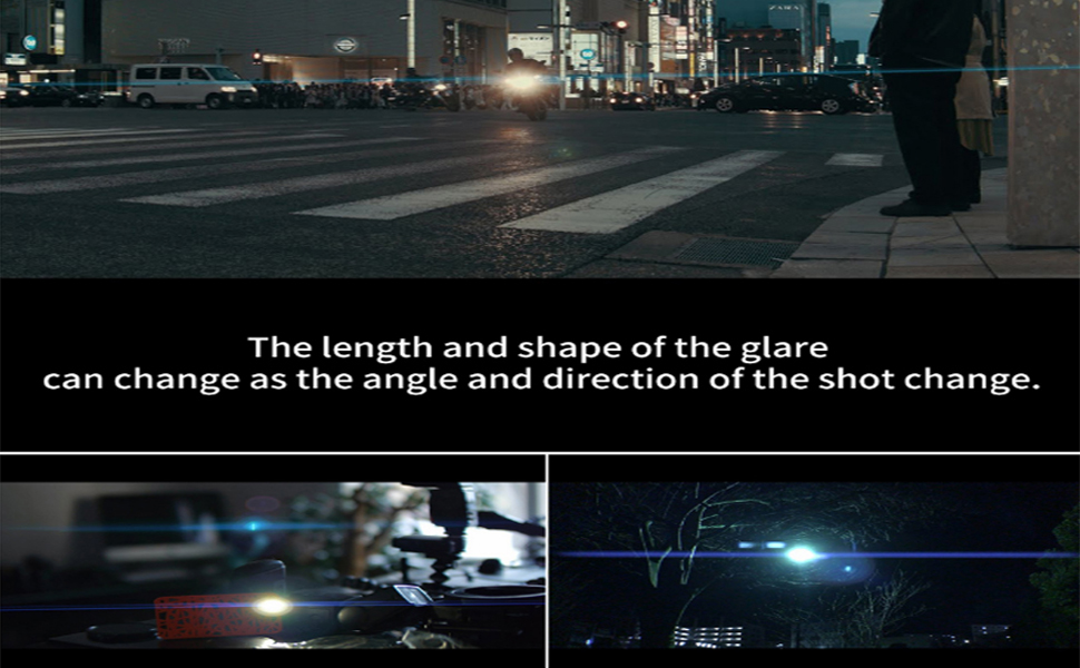 - 📷Professional Level Cinematography:One of Anamorphic's unique features is its ability to give you a cinematic look to your videos. When the lens is subjected to vivid light, either through car headlights, street lights or any hard light during night shoots, it creates a lens flare similar to what you see in movies.Origanic flares and distortion for added character and depth.